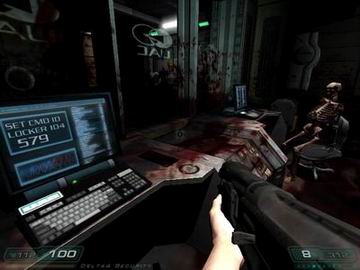…セキュリティ、ハッチに、弾薬とアーマーが…。 ごめんよ…。あの、”手段と目的がてんで勝手な方向に独立行軍してる鉄板馬鹿” には絶対絶対BFGでツッコミを入れてやるからね! 『 お前は、”絶対に”逃がれることはできない!!』 スピーカーより響く声に顔を上げると… 正面のコントロールルームに、コンソールを操るベトルーガー博士の姿が。
