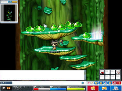 6月29日 LV30。アイアンアローを覚えた瞬間から、クロスボウマンとしての新たな生活が始まりました。 …へネシス周辺の豚が効率よく稼げるかも。 クエストアイテムを稼ぐべく、スリーピーにてジュニアネッキ、オクトパス、緑キノコを狩る。