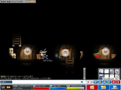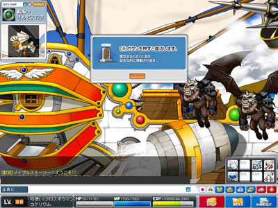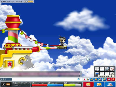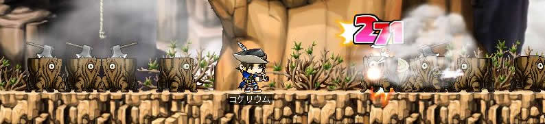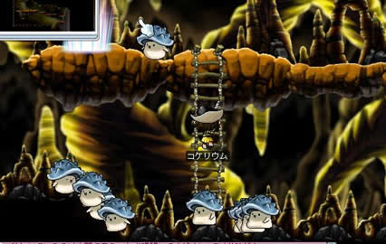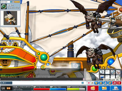 ぴょんぴょん跳ねるのでなかなか綺麗にアローが決まらない… 7月10日 lv35。 前日の中断箇所は画像の場所(エビルアイの巣のど真ん中)。 「…れ?動かないぞ?」パッドが入力を受けつけていないことに気が付きました。 必死にキーボードで逃走を図るも…果たせず。 事前より狩りを行っていた、プレーヤー二人が混乱を察してくださり(一方的なリンチ)、助けに入ってくれたのですけれど… 開始早々10秒ほどで討ち死に。 経験値大幅減少。 …今回初めてのお墓入りと相成りました。 あいたた…。 今日の教訓:ログオフは安全な場所で。 やっぱり、USBパッドは起動時の認識がどうにも怪しいですよね? なんとか1lvあげて終了。 7月13日 空飛ぶマッチョが攻めてきた。 lv36。 ビクトリアアイランドでの経験値稼ぎに息詰まりを感じたため、 ルディブリアム周辺ならなんとかなるだろうと当たりをつけて再度渡航することに。 まずはオシリアへ。 …と、なにやら不審な箱を発見。人目もないので破壊してみる。
