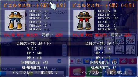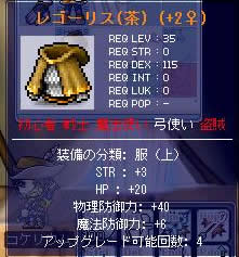 飛び…。(´・ω・`)<オプシュ 補給に戻った際、フリマにて呪いの人形が大量に売られていました。 値段もそこそこでしたので600個ほど所望。 鎧強化。 ルイマリ…。それはlv50付近の弓使いとって、なんとも微妙な防具。 ・レゴーリスが30,ピエルタが34、レゴリスパンツが防御点24、ピエルタスカートが27。 うーん。強化書の相場でも全身鎧の方が不利(高い)訳ですし…。ルイマリの価値って一体…。 愛用品のレゴーリスを強化します。 こんなの所詮確率と乱数表の問題なので、気を落とさずに続けます。 こんなの…(以下略