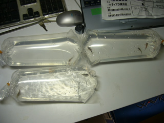 早速福袋を開けてみると… 中には3つのパック。 その内容は… 赤花白コリ各1匹。 コリドラスステルバイ1匹。 コリドラスパンダ3匹。…と私のコンコロール。 …ナマズだらけか。 …まぁ、…良いけどさ。
