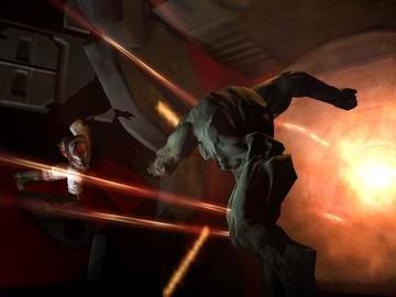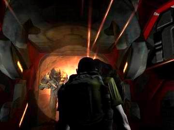 …セキュリティ、ハッチに、弾薬とアーマーが…。 ごめんよ…。あの、”手段と目的がてんで勝手な方向に独立行軍してる鉄板馬鹿” には絶対絶対BFGでツッコミを入れてやるからね! 『 お前は、”絶対に”逃がれることはできない!!』 スピーカーより響く声に顔を上げると… 正面のコントロールルームに、コンソールを操るベトルーガー博士の姿が。