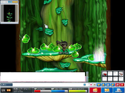 6月29日 LV30。アイアンアローを覚えた瞬間から、クロスボウマンとしての新たな生活が始まりました。 …へネシス周辺の豚が効率よく稼げるかも。 クエストアイテムを稼ぐべく、スリーピーにてジュニアネッキ、オクトパス、緑キノコを狩る。