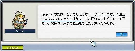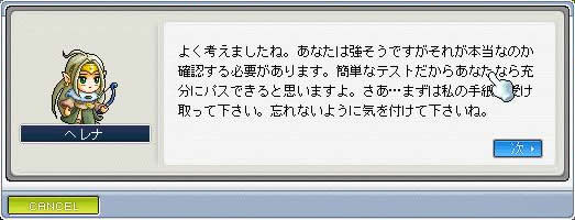 師匠より試験管への手紙を受け取り、ヘネシスからダンジョンへの途上に居る弓使い転職教官を訪ねる。 『弓使いの二次職転職試験について簡単に説明しますよ。 あんまり複雑ではありませんから…。』