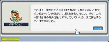 呪われた人形クエスト発動。(前クエストクリアが条件) このクエストは人気度の上昇が期待できる数少ないイベントの一つ。 しばらくはこのクエストを主体に組み立てしますね。