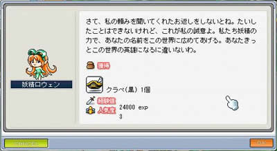 人気度+3、と。現金なものですが、ピエルタ黒(装備条件に人気度が20以上の制限有り、その分能力が高い) 装備のためには致し方ありません。 報酬のクラペはちょっと所持しきれないの(品質並)で売却しました。。